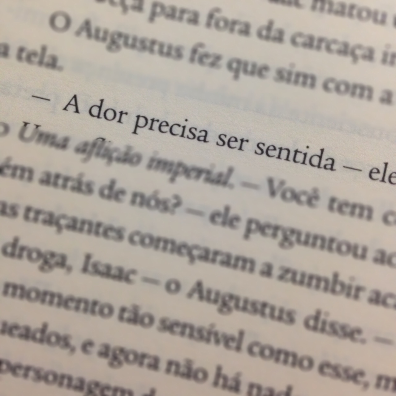 – Enquanto ele lia, me apaixonei do mesmo jeito que alguém cai no sono: gradativamente e de repente, de uma hora para outra. – Hazel