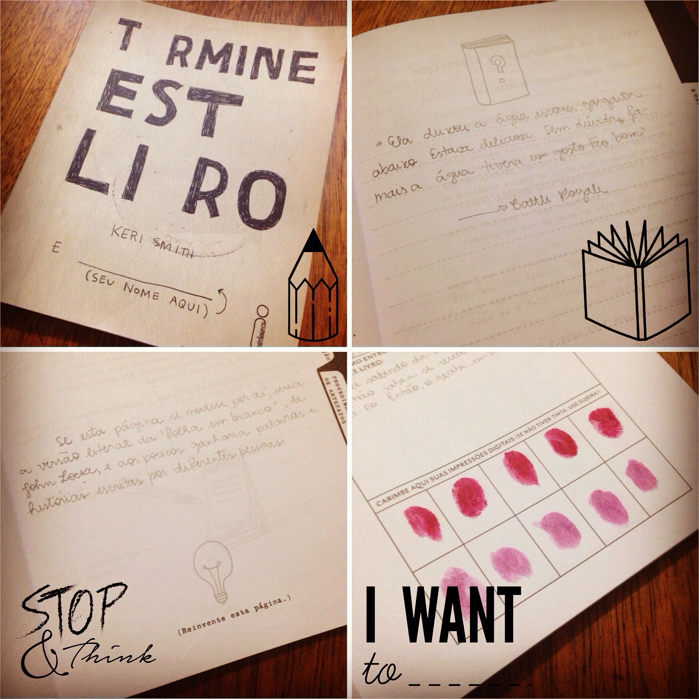 Os livros interativos estão na moda e Keri Smith se consagrou como uma das principais autoras do gênero. Após o sucesso de Destrua este diário, a Editora Intrínseca publicou Termine este livro, que logo também se tornou sucesso no Brasil. Aproveitei a parceria com a editora para ter minha primeira experiência com o gênero = e descobri que, apesar de ser divertido, brincar com o livro interativo não é meu maior talento.